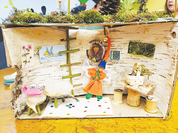 On October 20, Friends of Cheney Library hosted a Fairy Party in the Children’s Room of the library. Two stories were read, Puss in Boots and Thumbelina plus a poem by Jane Yolen, “Where Do Fairies Live.” Then the children started building their own fairy houses from a painted shoebox and lots of material from nature.