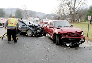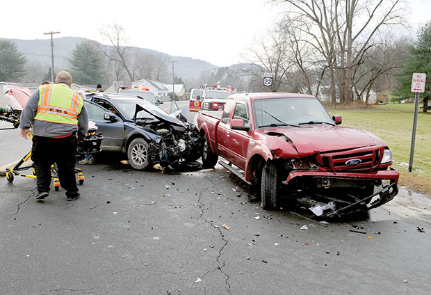 A crash at the intersection of Routes 22 and 346 Monday morning, November 26, sent one man to the hospital while several others were shaken up. A New York registered Volvo pulled southbound out of Route 346 into the path of a Vermont registered Ford Ranger pickup truck heading north.