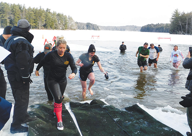 The thought of taking a brisk morning swim in Long Pond at Grafton Lakes State Park in a balmy 15 degrees is enough to make most people shiver, before even stepping foot in the water. But for more than 30 hearty souls, that is just how they spent their Saturday morning, January 26. It’s part of the Park’s Winterfest activities, that included a lot more than the annual Polar Plunge. The Plunge itself is a fundraiser for Our Lady of the Snow Parish Food Pantry. The event also features a silliest costume contest, the prize being a warm cuddly stuffed bear. A picture of this year’s winners appears on page 16.