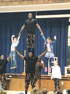 On Wednesday, January 23, students at Walter B. Howard Elementary were surprised with a high energy, culturally authentic acrobatic show by the ZuZu African Acrobats. The acrobats performed several tricks, like balancing on stacked chairs while performing handstands, intricate jump rope techniques, flips and human pyramids accompanied by upbeat African music.
