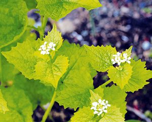 It smells of garlic when you pull it up. So put on your garden gloves and yank it up making sure you get all its taproot, enjoy its aroma, and then eat its leaves in a pesto with pasta. Pick it now before it goes to seed and don’t throw the roots in your compost bin