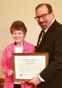 Through the years, Margaret has made a notable difference at Cheney Library. Her commitment to her community, and to librarianship as a whole, have earned her the well-deserved Volunteer of the Year Award.