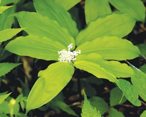 The native wildflower called False Solomon’s Seal (Smilacina racemosa) is blooming now in our wooded areas with leaves between three and six inches. Later this summer, red berries will replace the flowers.