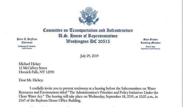 Hoosick Falls resident Michael Hickey has previously been the guest of Congressman Antonio Delgado to present testimony on the PFOA pollution in the village. Now he is being invited back to testify before the House Subcommittee on Water Resources and Environment. The testimony is slated for 10 am on Wednesday September 18.
