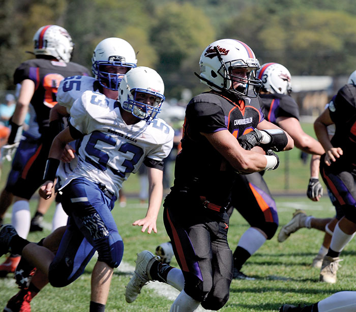 Saturday, Sept. 28. The Cambridge Indians had it all clicking on this afternoon. In all aspects of the game the Indians dominated the Hoosick Falls Panthers. With four minutes gone in the game the Indians held a 14-0 lead and never looked back. The Indians ran for 476 yards to the Panthers 180. Max Kipp, a running back in this game after being the starting quarterback, gained 164 yards on the ground.