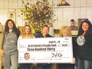 Proceeds from the Hooley were donated to the Hoosick Falls Parade Fund. $330 was the amount raised and presented via giant check.