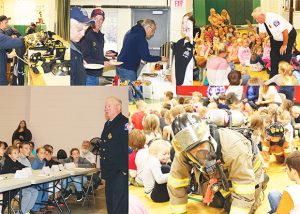 Wednesday the Firefighters held an assembly at the Elementary School that was followed by students exploring fire trucks and receiving demonstrations of the Firefighter’s gear.
