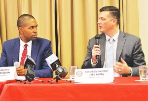 On Friday, November 8, 19th District Congressional Representative Antonio Delgado sponsored a panel discussion on the various ways to help ease veterans’ transition to civilian life. Part of that panel was 107th District Assemblyman Jake Ashby, himself a veteran who admits he struggled upon his return home. The Assemblyman is pushing legislation that would raise the NYS Division of Veterans Services to a state agency level, with a director that would have cabinet level status. The Assemblyman told those gathered at the Brunswick Elks Lodge, “current issues facing Veterans and their families require deliberate examination and our consideration every day.”