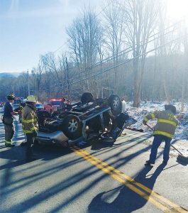 New York State Police say a Cohoes woman lost control of her vehicle while traveling eastbound on NYS Route 2 Saturday morning, November 9, going off the road into a ditch and rolling over. The car came to rest back in the roadway on its roof. It took some time for Petersburgh firefighters, with the help of the Grafton Fire Department, to extricate her from the vehicle.