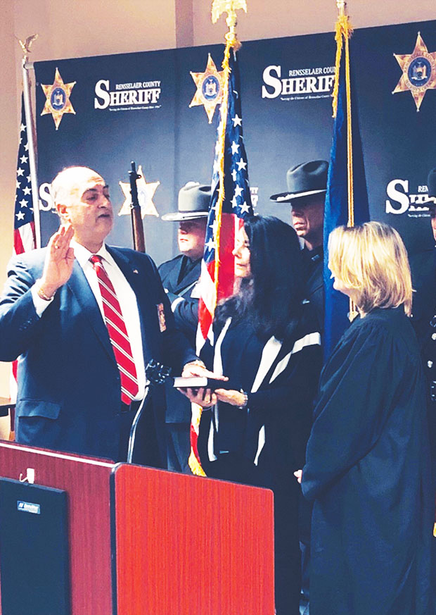 With his wife Amy holding the Bible, Rensselaer County Sheriff Pat Russo was sworn into office for another four-year term on Friday morning, December 27. Following the ceremony, Sheriff Russo said “I can say with confidence the Department is better equipped and better trained than at any time in its history.”