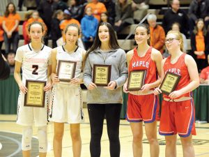 Lilly Phillips, second from left, was named to the Section 2, Class C All Tournament All Star Team, along with a Hoosic Valley player and two Maple Hill players.