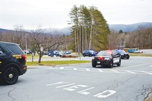 At 8 am on Thursday, April 2, local law enforcement agencies—including those from the Bennington Police Department, Bennington Sheriff’s Department, Rensselaer County Sheriff’s Department, Vermont State Police and Cambridge Police Department—paid a special visit to Southwestern Vermont Medical Center (SVMC). Dozens of law enforcement vehicles paraded up Hospital Drive, with lights only, stopped in front of the entrance for approximately 60 seconds, and got out of their vehicles as a salute to staff. Staff had been notified prior to the salute and many were outside to receive the honor.