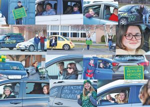 On April 16, the Berlin Central School District Class of 2020 arrived at the Berlin Middle-High School parking lot for the announcement of the “Top 10” with a twist. To maintain social distance, students and families backed into specially marked senior parking spots with signs for the seniors and families. These were a gift from Berlin CSD and a way for families to highlight their extraordinary seniors from home.