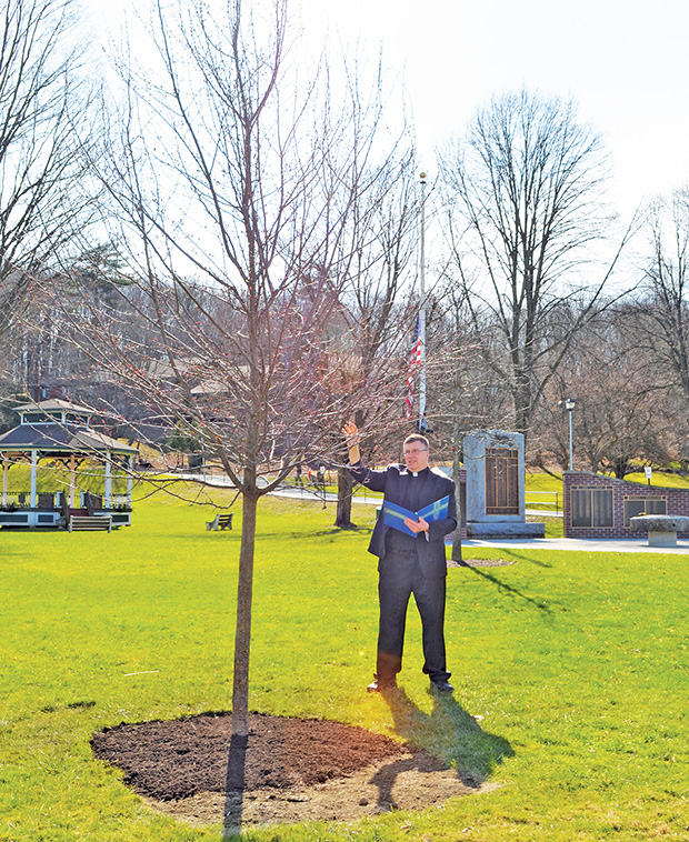 With all the stress and worry brought on the world and our community by the COVID-19 virus, officials in the Town of Hoosick and Village of Hoosick Falls wanted “to create something that represented the strength, resilience and the commitment to family, friends and community that exists here.” Hoosick Town Supervisor Mark Surdam, Hoosick Falls Mayor Robert Allen, Village Police Chief Bob Ashe and HACA member Fr. Tom Zelker of Immaculate Conception Church chose to offer a symbol of hope to their constituents by planting a tree in Wood Park “demonstrating that we are rooted in each other, and rooted in Hoosick.”