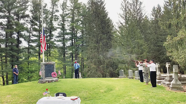 New Lebanon’s American Legion Post color guard was joined by other town organizations and officials to conduct the ceremonies. The color guard is shown here taking part in the three gun salute.
