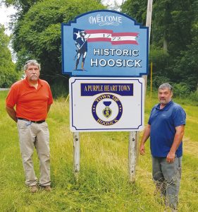 On July 13 the Hoosick Town Board officially declared the town to be a Purple Heart Community. Road signs designating Hoosick as a Purple Heart Town are now being installed.