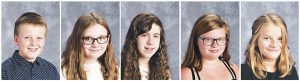 Garrett Emerson (7th grade), Karalina Hastings (7th grade), Ashley Druckenmiller (8th grade), Lucy Haynes (8th grade), Sophie Kelly (8th grade).