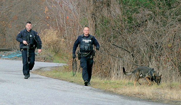 Hoosick Falls Village Police were called to a parking area behind the Sand Bar Restaurant on Saturday morning, November 28, and discovered a vehicle that had been stolen out of West Hoosick. Residents informed officers they had seen a man exit the vehicle carrying two rifles, and head down the railroad tracks toward the Village. Officers immediately called for back up from the NYS Police and Rensselaer County Sheriff’s office, as well as a K-9 unit from the Troy Police Department. According to Hoosick Falls Police Chief Bob Ashe, the dog quickly picked up the suspect’s scent and tracked him to a house on First Street.