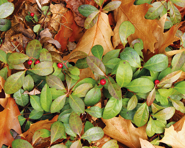 Eastern Teaberry (Gaultheria procumbens) is native to the eastern United States.It grows in forests, but produces flowers mostly in sunlight.