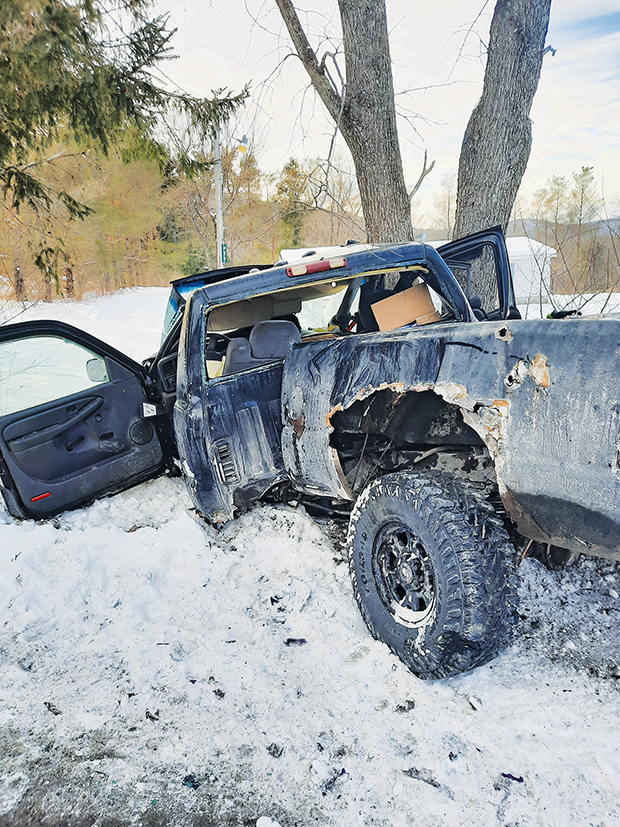 A 28-year old Hoosick Falls man’s trip ended not as he planned, and with a different destination, the hospital. According to Rensselaer County Sheriff’s Deputies, the driver of this pickup was northbound on East Hollow Road, near Thistle Hill Way, when he lost control of the vehicle and slammed into a tree.