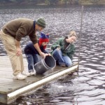 Cherry Plain State Park received some new residents that will benefit local anglers. In late October, a group of Park staff, including Acting Manager Melissa Miller and friends, were able to take part in a long awaited fish stocking program on Black River Pond. The group assisted local fishery owner, John Clark from Northeastern Aquatics, in releasing 1,000 large mouth bass into the pond.