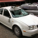 “The car just stopped!” said Clement, a breakfast chef at the chic yoga retreat, Kripalu, in Stockbridge, Massachusetts. One second he was doing 55 mph on Route 20 just east of Lebanon Valley Speedway and the next second Clement’s car, a 1999 Volkswagen Jetta, was dead on the highway. There was now a large hole where the windscreen had been and for some reason the steering wheel was bent.