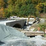 The new bridge at Broken Wheel Road in Petersburgh is getting close to finished.There were five men working on October 4, placing rock on the slopes and around the base of the bridge. They expect to be paving the roadway in about a week.