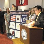 Members of the Rensselaer County Legislature welcomed two Hoosick Falls Girl Scouts who designed a special remembrance quilt for the 10th anniversary of the September 11 terrorist attacks.