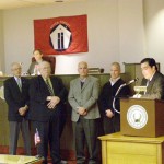 The family of John “Jack” Dwyer came to the Rensselaer County Legislative Chamber on Tuesday evening to receive copies of the resolution that was passed in his memory at last month’s meeting. Former Hoosick Falls Mayor Don Bogardus accompanied Jack’s son Phillip and his wife Vicki into the well of the Legislature where District 5 Legislators Stan Brownell and Lester Goodermote made the presentation.