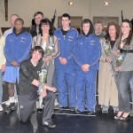 Monday evening was Senior Night for the HFCS Wrestling team. Before the varsity match senior wrestlers Keith Davendonis, Matt Fogarty, Jordan Robichaud and Jacob Pearson and the team’s senior bookkeeper, Kathleen Grogan, along with their families, were honored by the fans.