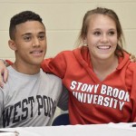 Two HFCS seniors signed their National Letter of Intent to Division I schools Tuesday afternoon in the high school cafeteria. The signings took place in front of a crowd of coaches, administrators, teachers, fellow students and teammates.